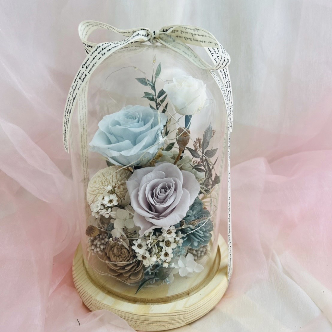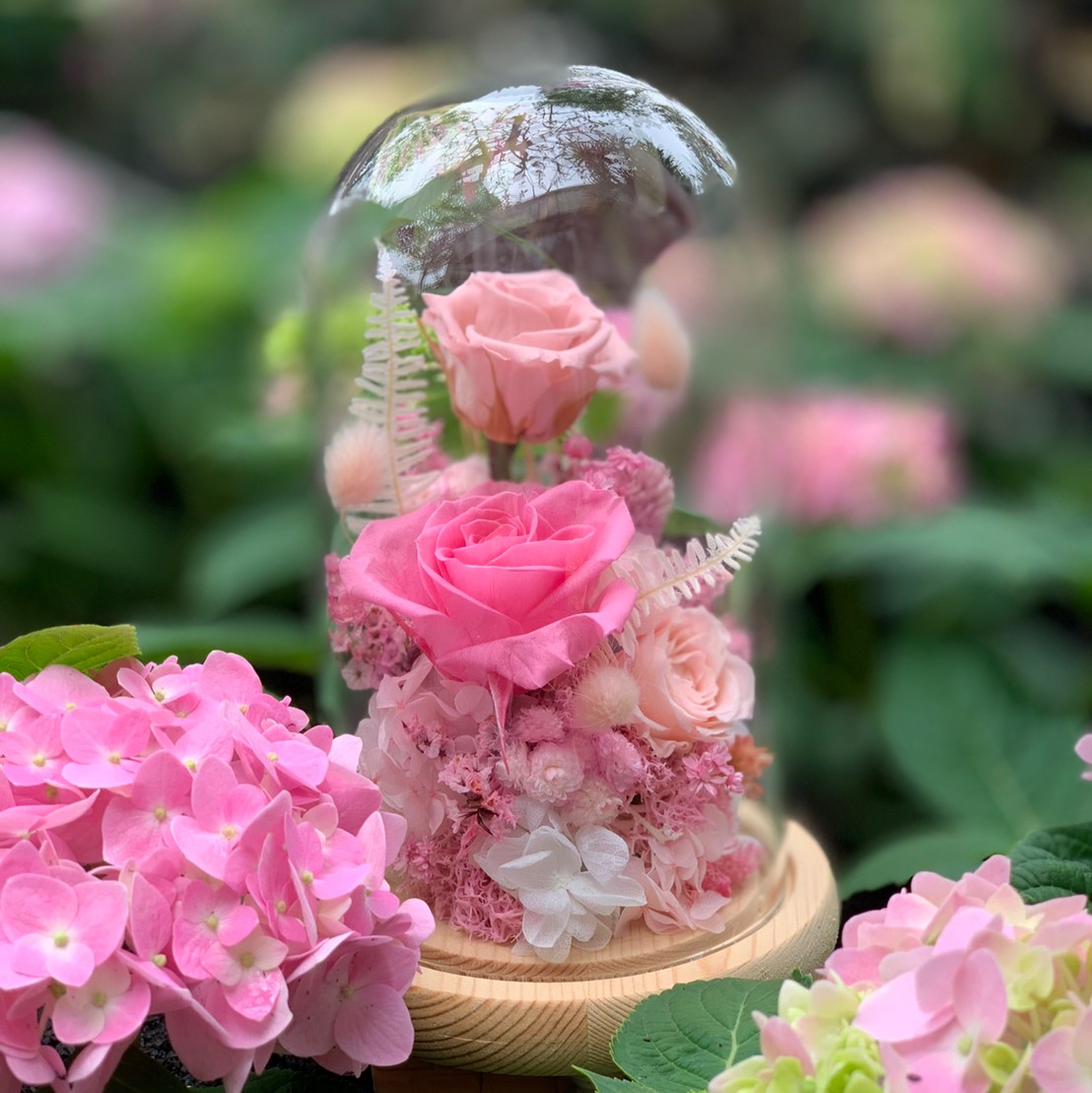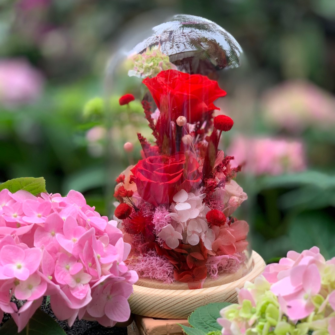 進口永生玫瑰 x 進口米香花x 進口法國白梅 x 進口繡球花